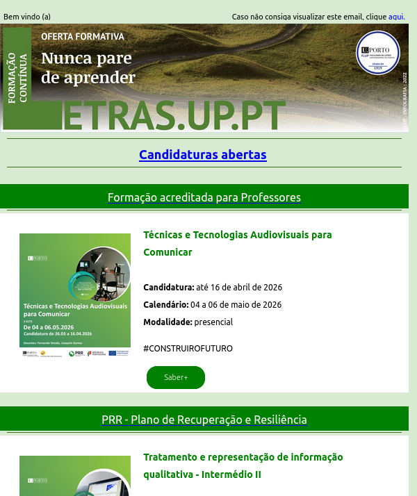 Newsletter - Educação Contínua FLUP | PRR - 15€ | março